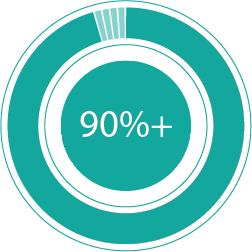 80%+ of primary raw materials are developed with a minimum of 20% recycled content.