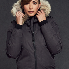 With not only a removable cuff but also a removable hood, this ladies bomber jacket transitions perfectly from fall to winter.